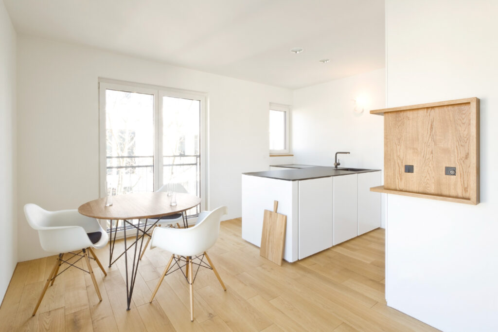 Tara Architekten aus Bozen ist es gelungen, hier einen Neubau mit umfangreicher Leichtigkeit und großzügigem Tageslichteinfluss zu schaffen. Ineinander überfließende Raumsituationen ergeben eine offene Atmosphäre mit hoher Lebensqualität. Vor allem wird der puristische Wohnbereich geprägt durch raumtrennende Elemente. Diese von uns erstellten Holzeinbauten aus sanft gebeizter Eiche ziehen sich durch den gesamten Wohnraum. Durch geschickte […]